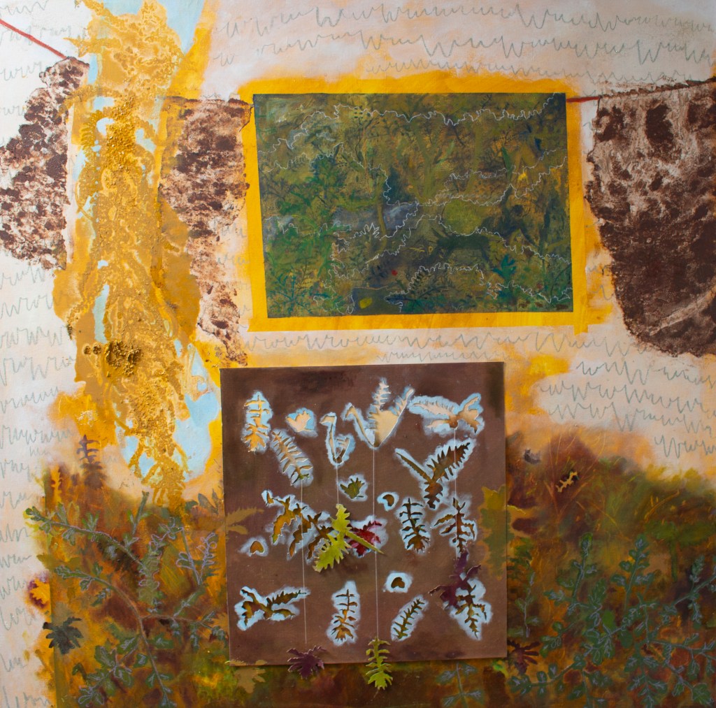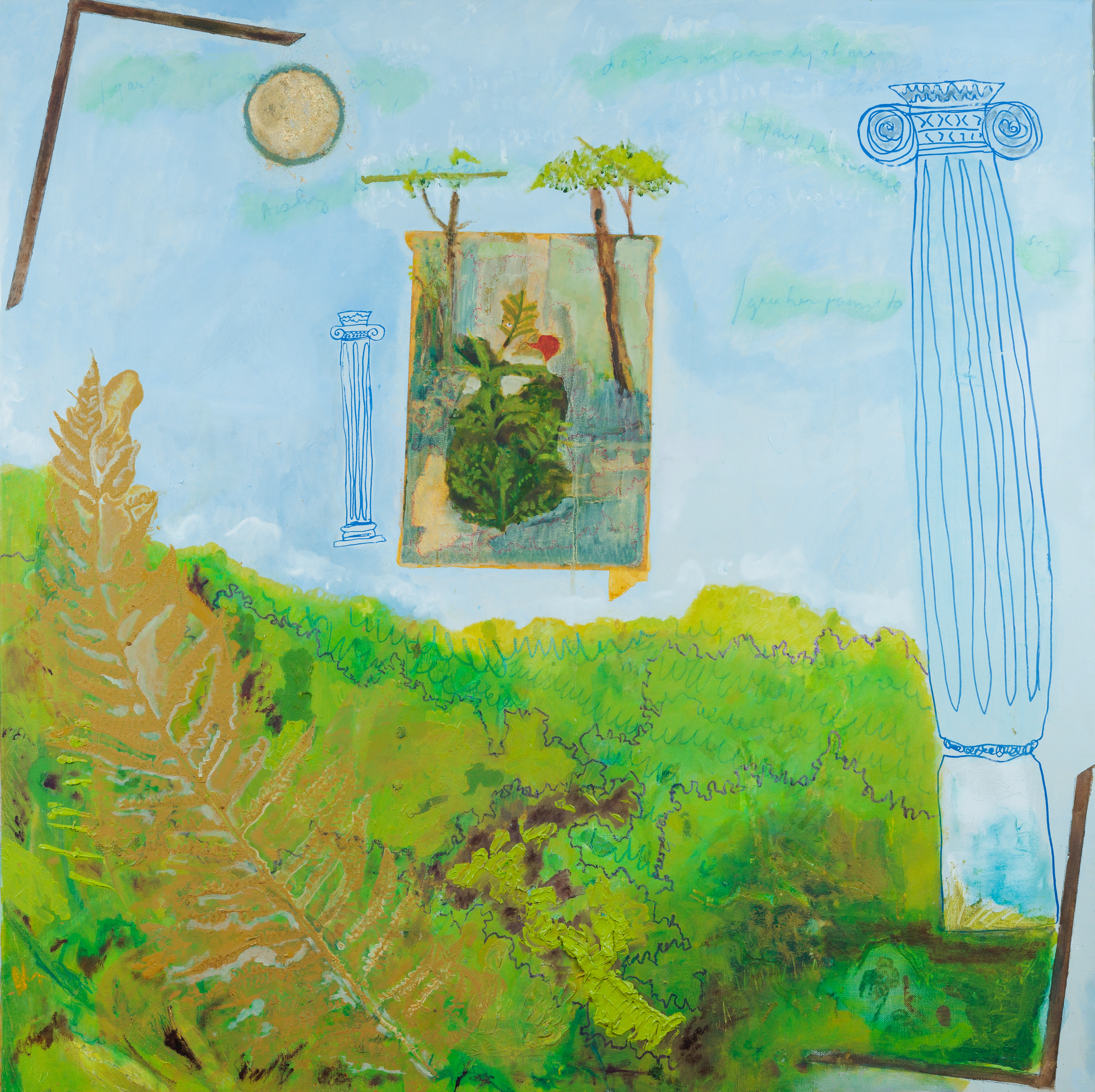 The fern appears throughout those seven paintings, continuing Long’s interest in the potential allegorical qualities of the plant. The fern’s ability to reproduce asexually and sexually through the production of spores, along side its primeval origins, has generated a rich mythology, in particular that of the imaginary ‘fern flower’.