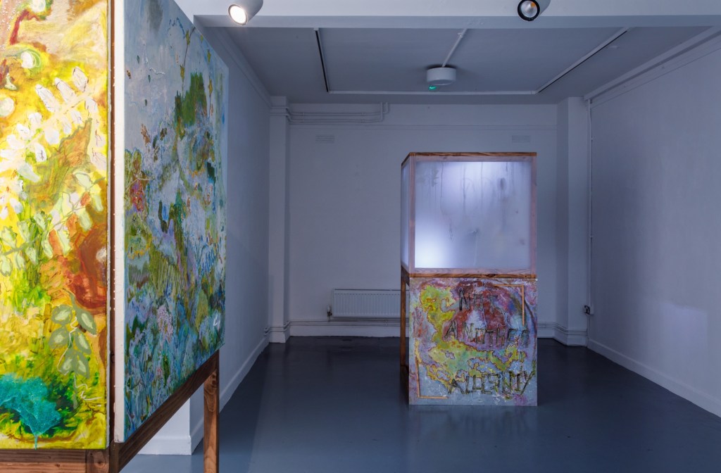 This exhibition is part of larger project Death and Dreams. Death and Dreams is a work of autofiction that encompasses painting, performance, sound, moving image and long form text. The work engages with the Mother Ireland figure and reflects on repressed feminine archetypes.