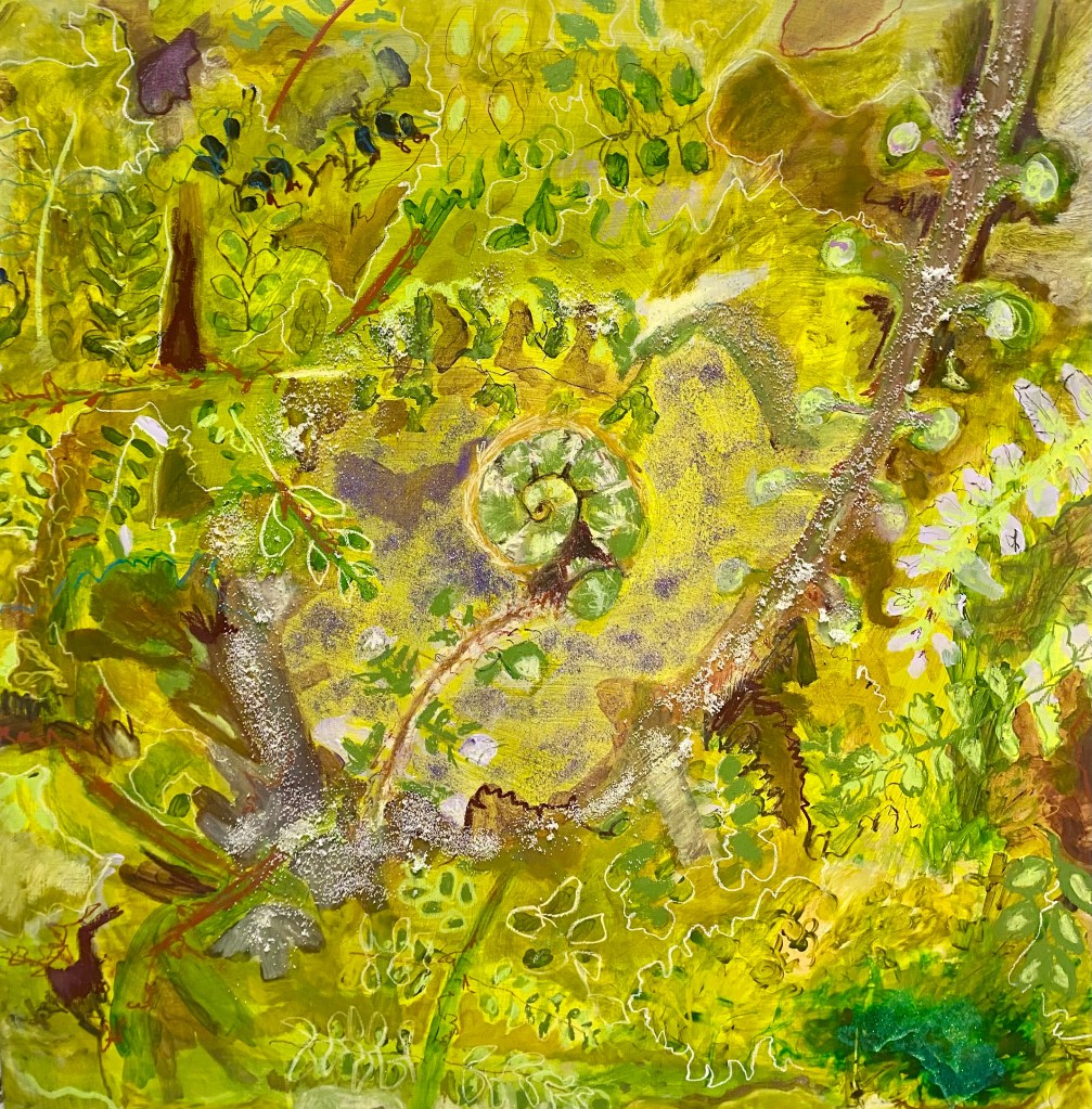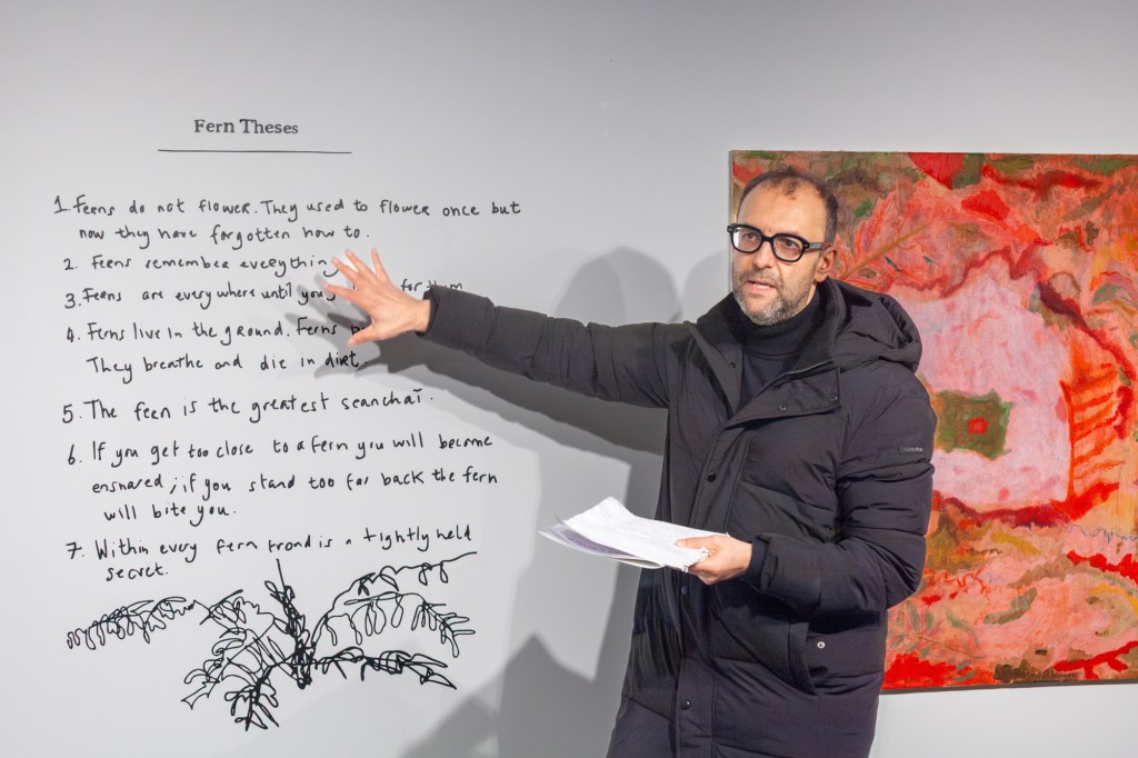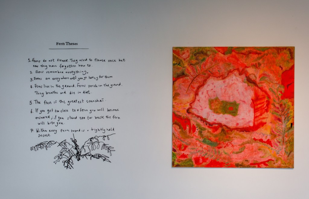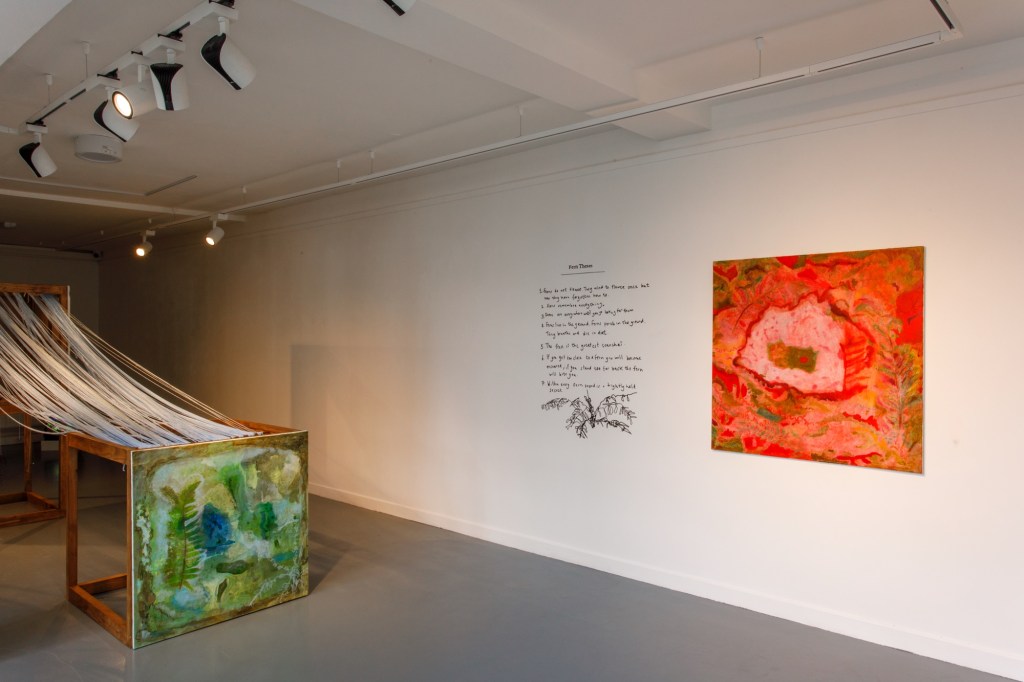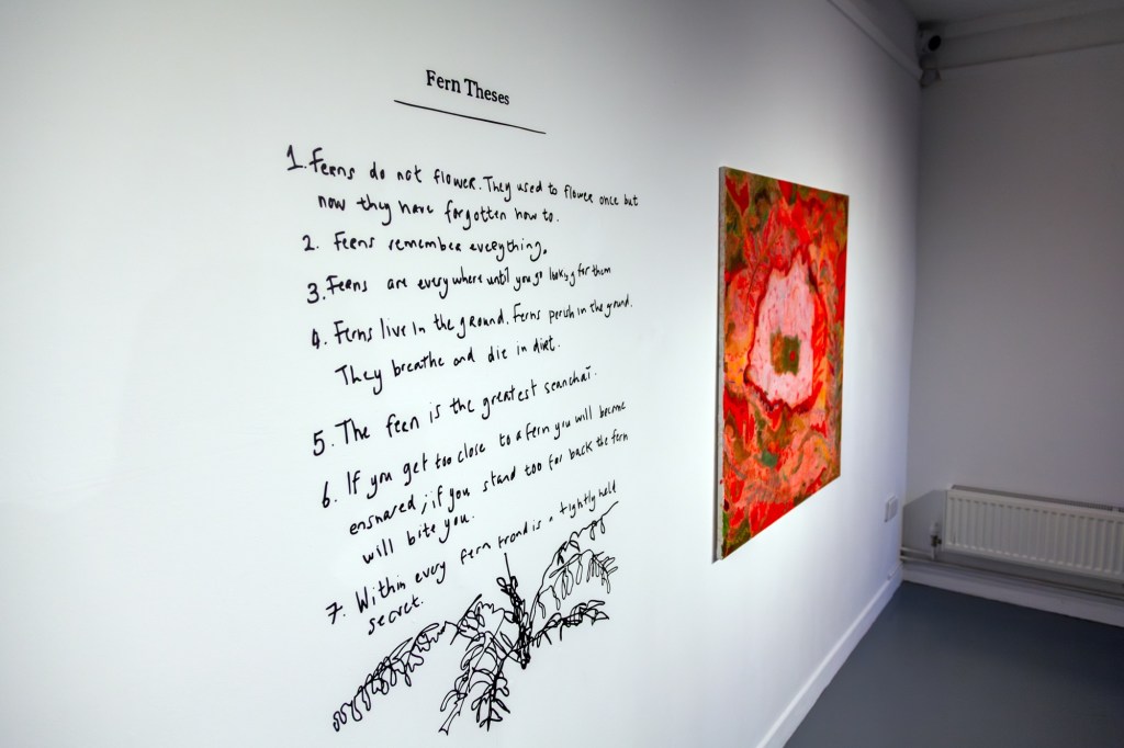 I will not flower presents an installation of painting and sound that reflects on the potential allegorical qualities of the fern plant. The fern’s ability to reproduce asexually through the production of spores, along side its primeval origins, has generated a rich mythology, in particular that of the imaginary ‘fern flower’.